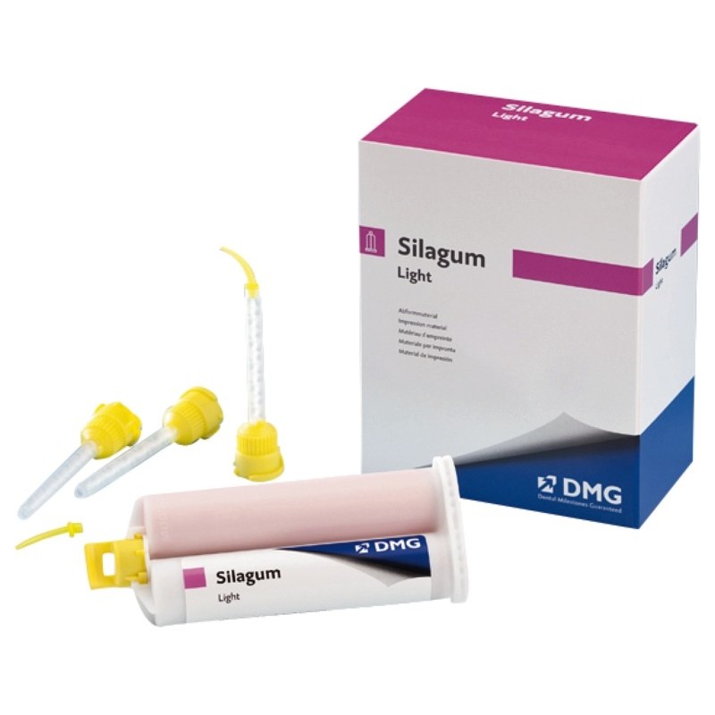 Silagum Light Fast DMG - Silicona de adición - Impresiones con muy alta corrección - Light Fast: 1'45 minutos de fraguado - 2 x 50 ml - 12 puntas mezcla + 12 puntas intraorales