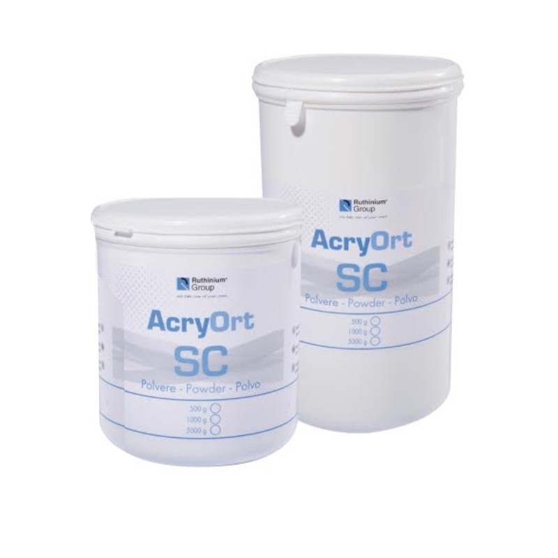 Resina Acry Ort SC Ruthinium - Autopolimerizable - Para prótesis de Ortodoncia - De elevada transparencia - Adecuada también para la técnica vertido Acry Pol LL - Envase: Polvo 500 g