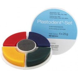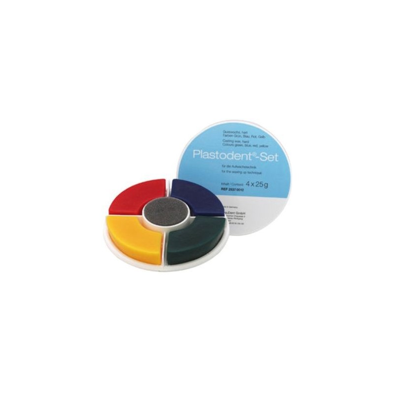 ( 25370012 ) Plastodent Set Degudent - Precio Oferta Especial - Cera modelar de varios colores - Colores: Azul, Verde, Rojo y Amarillo (un bloque de cada color) - Apta para todo tipo de trabajos - Caja de 100 g (4 x 25 g)