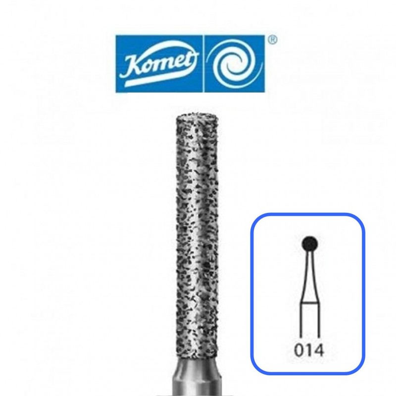( 837314014 ) Fresas 837 Komet - Diamante - Tamaño 014 - Para Turbina (314) - Grano Medio - Forma Paralelo con Hombro - Indicada para Preparación de Coronas - Blister 5 unidades