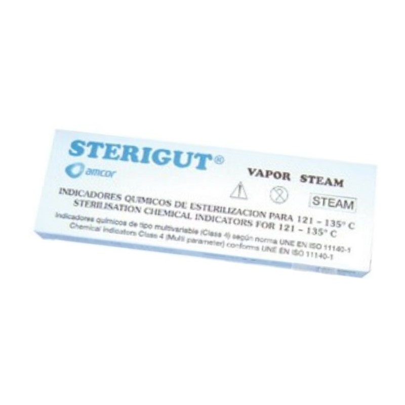 Tiras de Vapor Sterigut Amcor - Indicador químico para vapor-Informa del desarrollo del proceso de esterilización-Contenido envase: 250 unidades dobles