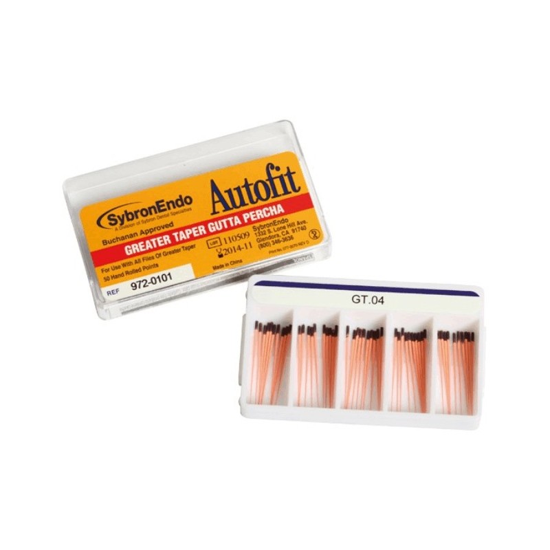 SybronEndo - Puntas Gutapercha Autofit - Conicidad variable - Punta cónicas - Afiladas - Diseñadas para ajustarse al conducto - Envase: 50 unidades - Medidas: 04, 06, 08.