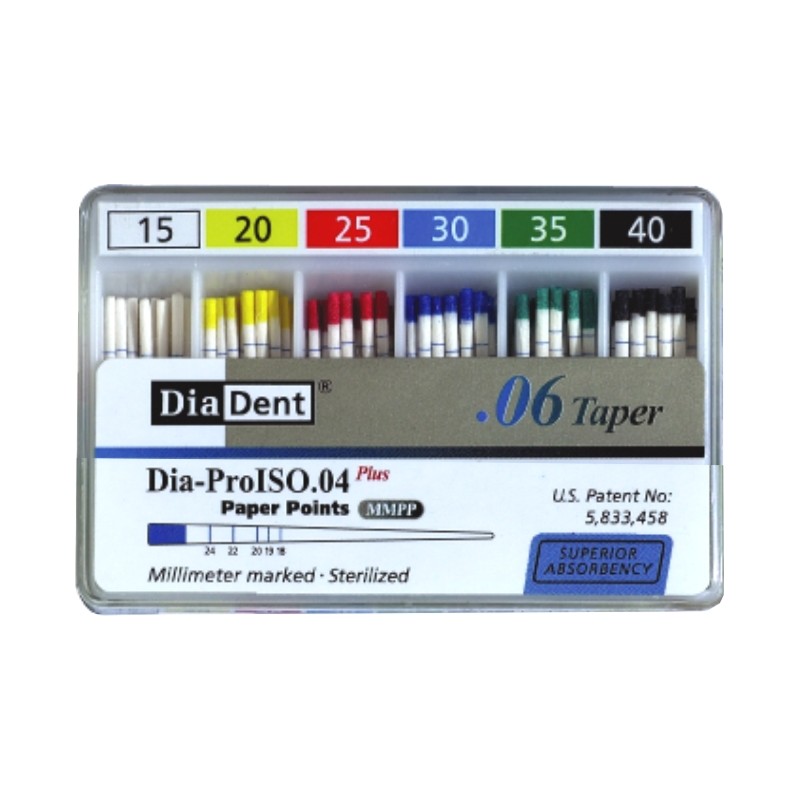 Diadent - Puntas de Papel con Conicidad 6% - Disponible en calibres: 15, 20, 25, 30 - ISO Taper 6% - Puntas con marcado láser - 100 unidades de un mismo número