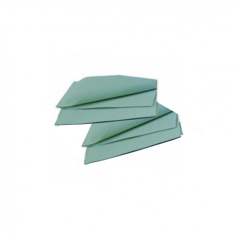 Servilletas / Baberos Euronda - Color Verde - Dos capas: 1 de papel y 1 de polietileno - Estampado relieve - Impermeable - Con refuerzo plástico - Envase de 500 unidades