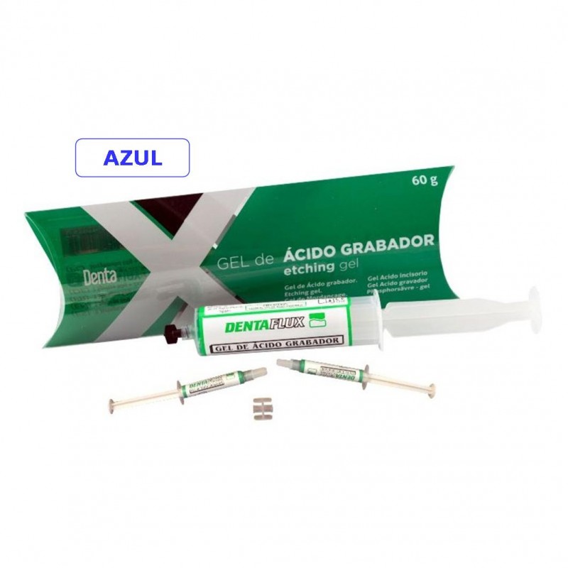 Gel Grabador Dentaflux - Tamaño Jumbo (formato XXL) - Ácido grabador al 37% - Color Azul - Contiene: 1 jeringas x 60 g + 2 jeringas x 3'5 g + 24 tips