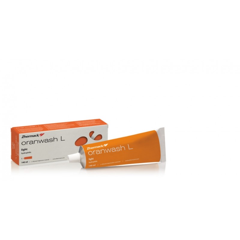 Oranwash L Light Zhermack - Silicona ligera de Condensación - Gran calidad y fiabilidad - Especialmente indicada para la técnica de doble impresión - Color naranja - Aroma naranja - Contenido: 140 ml