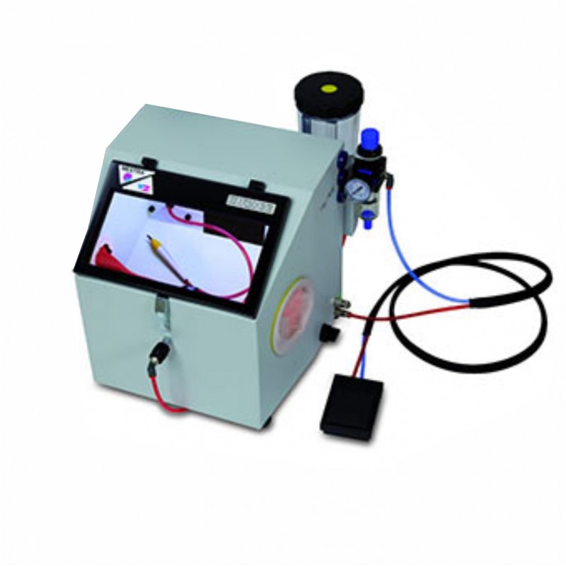 (R-080294) Chorro de arena Terra II Mestra - Similar al T2 Mestra pero con una cámara de mayores dimensiones, empleo más ergonómico y una iluminación más potente (LED 6W) - Pistola estática y vaso de microchorreado - Sistema de recirculación de la arena - Acabado en acero pintado - 100 l/min - Peso: 9 Kg - Medidas (cm): 39 x 47 x 41