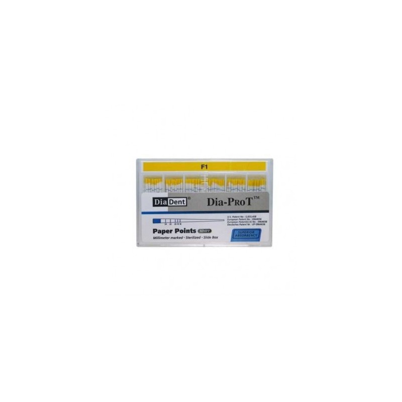 Puntas de Papel Dia-Prot DiaDent - Del nº F1 - Diseñadas para ser empleadas en sistemas compatibles con limas Protaper - Puntas con marcas milimetradas - Envase con 100 unidades