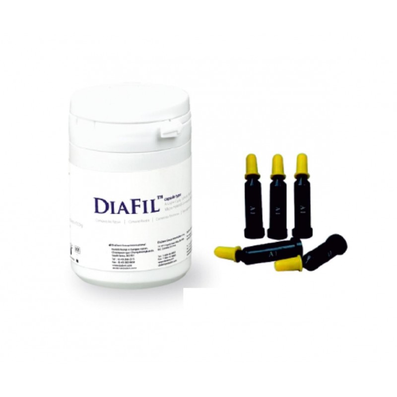 Composite DiaFil Capsule Diadent - Color B2 -Envasado en Compules - Composite microhíbrido y fotopolimerizable - Radiopaco - Envase: 20 Compules x 0,25 g - También disponible en colores: A1, A2, A3 y A3'5