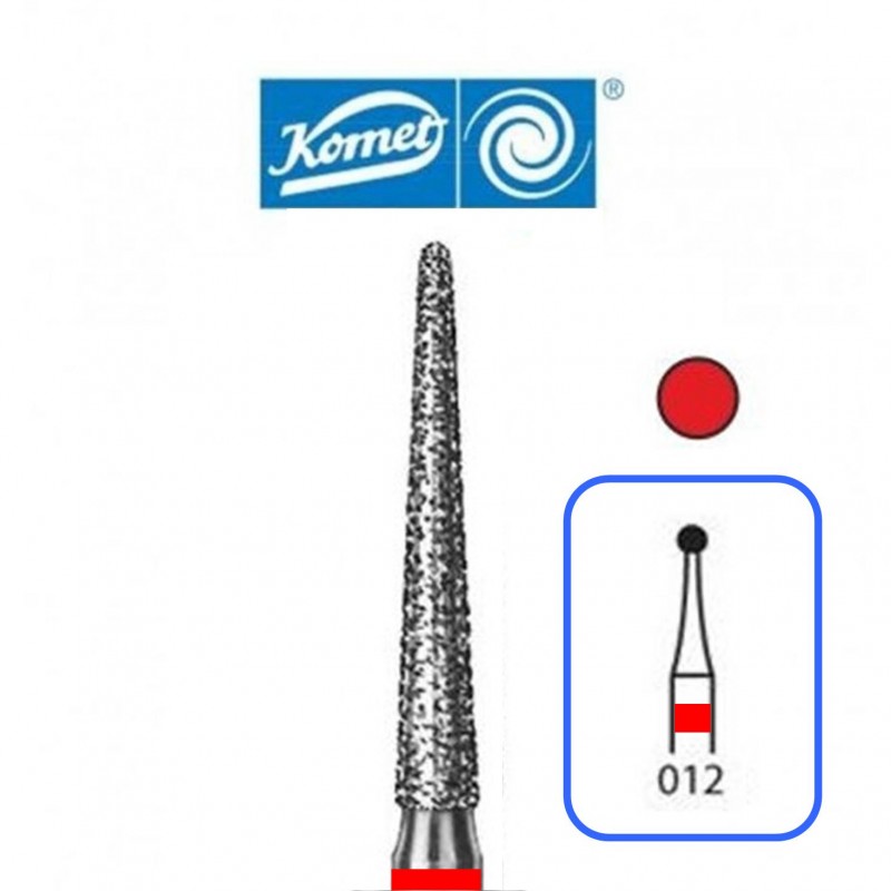 ( 885031412 ) Fresas 8850 Komet - Diamante - Tamaño 012 - Para Turbina (314) - Grano F-Fino (Aro Rojo) - Forma Cónico Redondo - Largo - Punta Redondeada - Indicada para Preparación de Coronas - Ángulo - Blister 5 unidades