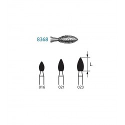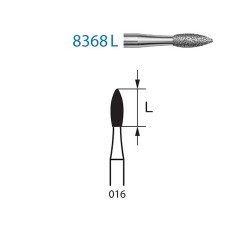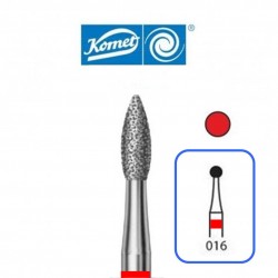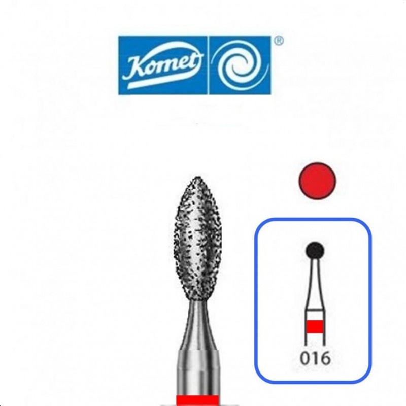 ( 8368314016 ) Fresas 8368 Komet - Diamante - Tamaño 016 - Para Turbina (314) - Grano F-Fino (Aro Rojo) - Forma en Llama - Indicada para Preparación de Coronas - Obturaciones - Tallado Oclusal/Lingual - Blister 5 unidades - Consultar disponibilidad opción alternativa 8368L-314-016