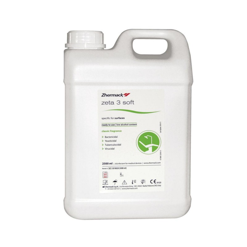 ( c810024 ) Zeta 3 Soft Zhermack - Desinfectante y detergente con alcohol - Indicado para Superficies de dispositivos médicos - Listo para usar - Garrafa de 2'5 Litros