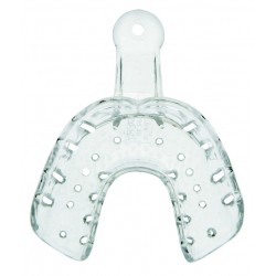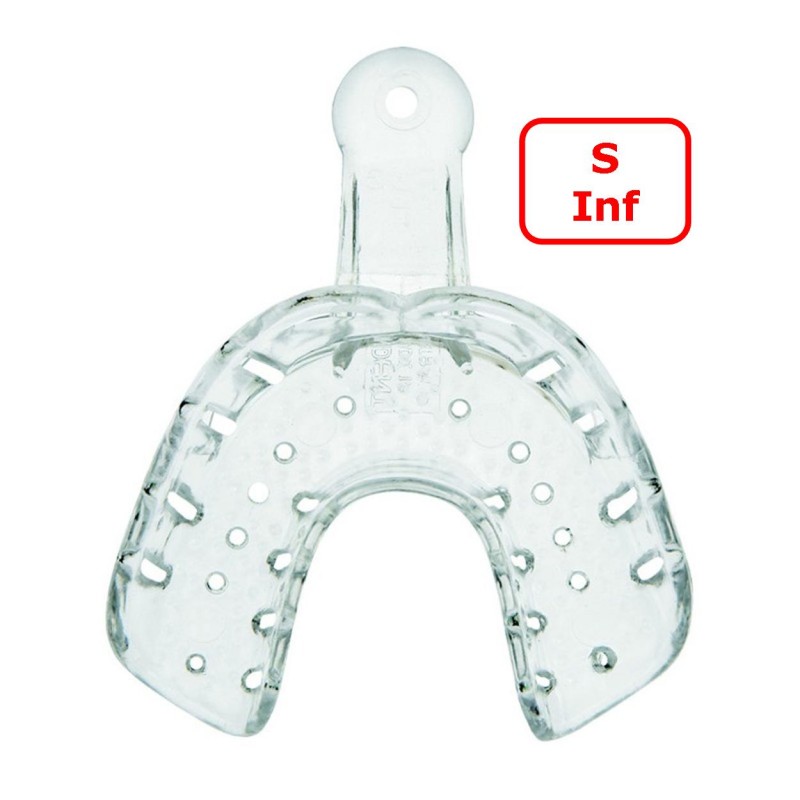 ( D5CSLO ) Cubetas Plásticas Hi-Tray Light Clear Zhermack – Modelo: S-LO (Pequeña Inferior) – 12 Unidades - Fabricadas en Plástico Rígido Transparente – Desechables – Autoclavables - Indicadas para aplicaciones estándar o para aplicaciones con materiales fotopolimerizables - Diseño perforado para una mejor retención mecánica - Mango reforzado con nervaduras para una mejor distribución de la presión ejercida
