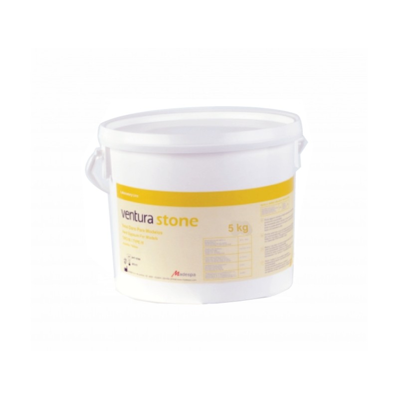 ( 1344 ) Yeso Tipo III Stone Ventura - Color Amarillo - Indicado para trabajos de tipo general - No se distorsiona - Resistencia a la compresión - Fraguado: 8-14 minutos - 5 Kg de escayola