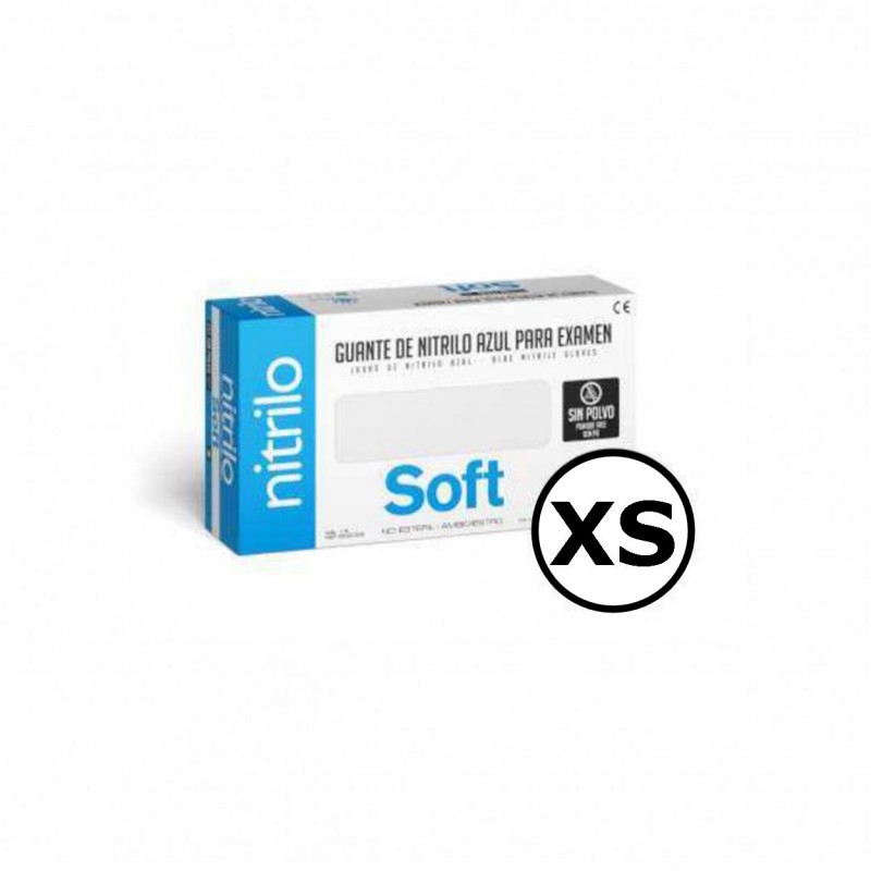 ( 60202XS ) Guantes Nitrilo Soft - Talla ( XS ) - Color Azul - Sin Polvo - 4,5 g - Higiénicos - Ambidiestro - No Estéril - Un sólo uso - Adaptabilidad anatómica - Presentación: Cajas dispensadoras de 100 unidades
