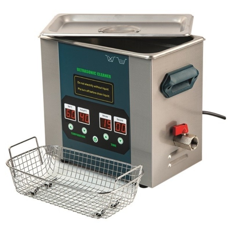 ( R-100150 ) Baño Ultrasonidos Mestra - Capacidad: 2,8 litros - Fabricados en acero inoxidable - Temperatura - Desagüe - Cesta metáltica - Dimensiones (mm): 300 x 245 x 165 - Peso 3,9 Kg