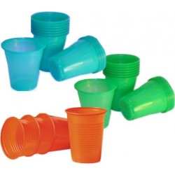 Vasos de plástico desechables - Color Azul - Capacidad del vaso de 150 ml - Fabricados en polietileno - En tira 100 de unidades - También disponibles en otros colores (consultar disponibilidad en azul, verde, naranja, blanco, ...)