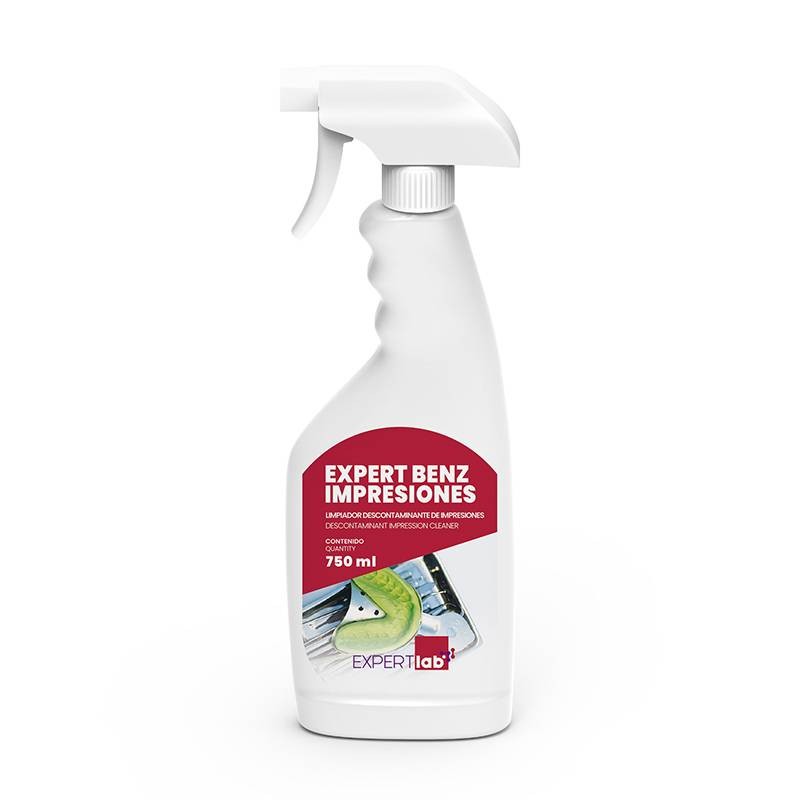 ( EXP0040750 ) Desinfectante para Impresiones Expert Benz ExpertLab - 0'75 Litros - Botella de 750 ml - Producto 3 en 1: Desinfección, limpieza y mantenimiento - Producto listo para su uso - Eficaz desde 60 segundos - Secado rápido sin dejar residuos - Doble acción: limpia y desinfecta - Libre de aldehidos - No corrosivo - Uso Profesional - Producto Sanitario Clase I - Licencia de Fabricación de Producto Sanitario: 8894-PS - BACTERICIDA Pseudomonas aeruginosa, Staphylococcus aureus, Enterococcus hirae 60 seg. - FUNGICIDA Candida albicans, Aspergillus brasiliensis 5 min. - LEVURICIDA Candida albicans 60 seg. - VIRUCIDA Adenovirus tipo 5, Norovirus murino, Norovirus, Rotavirus, Adenovirus, Virus con envoltura (incl. HBV, HCV,HIV,CORONAVIRUS) 60 seg.