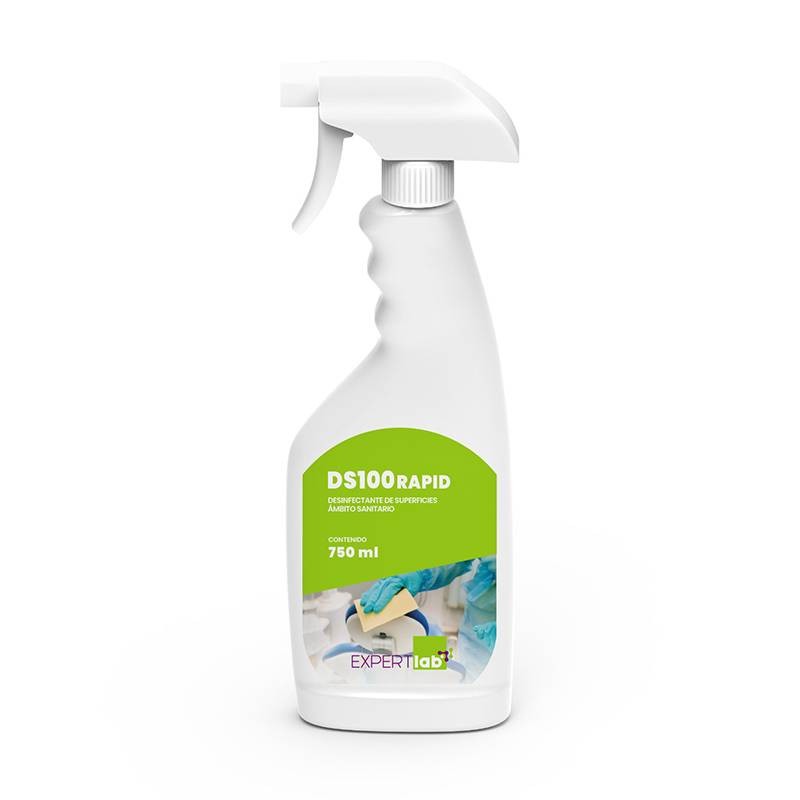 ( EXP0000750 ) Desinfectante para Superficies DS100 Rapid ExpertLab - 0'75 Litros - Desinfectante de Superficies – Spray de 750 ml – Características principales y Propiedades Microbiológicas a 20 ºC - Desinfección rápida de todas las superficies en consultas, hospitales y clínicas - Comodidad de empleo - Secado rápido sin dejar residuos - Libre de aldehidos - Perfume agradable - Producto listo para su uso - Eficaz desde 60 segundos - Alto espectro de eficacia: actividad bactericida, levuricida, fungicida y virucida - No corrosivo - Doble acción: limpia y desinfecta - Uso profesional - Registro AEMPS: 1383 – DES - Licencia de Fabricación de Producto Biocidas: 13273-DS - Comprobado mediante el ensayo de 4 campos según las normas - UNE EN-13727, EN-13624, EN-14476 - BACTERICIDA Pseudomonas aeruginosa, Escherichia coli K12 - Staphylococcus aureus, Enterococcus hirae... 60 segundos - FUNGICIDA: Candida albicans, Aspergillus brasiliensis...5 mimutos - VIRUCIDA: Adenovirus tipo 5, Norovirus murino, Norovirus - Rotavirus, Adenovirus, Virus con envoltura (incl.HBV, HCV,HIV,CORONAVIRUS), 60 segundos)