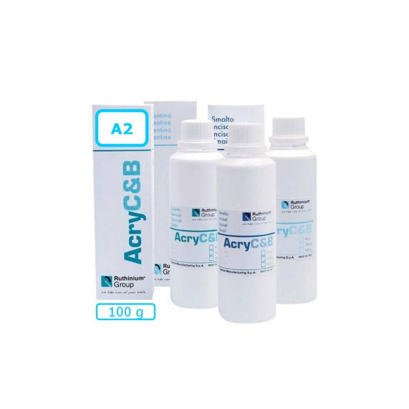 Acry Lux C&B Ruthinium - Dentinas para Provisionales - Color A2 - Para puentes y coronas - Color según disponibilidad en guías Acry Lux y Acry Lux Vita - Polímero acrílico alto peso molecular - Alta estabilidad coloración - Resistente a la abrasión - Envase: 100 g