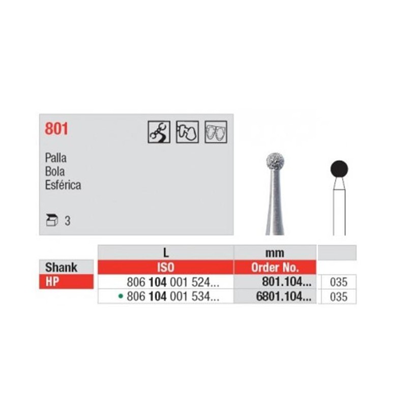 ( E801104035 ) Fresa Diamante 801-104-035 Edenta - Forma Redonda / Esférica - 801.104.035 - Grano Medio - Para Pieza de Mano - Tamaño: 035 - Venta por unidad - Instrumentos de diamante para obtener un resultado de precisión - Reducción óptima de material con unas superficies de acabado fino - Larga vida útil y buen rendimiento de corte para repasar y separar cerámica, resinas de recubrimiento y materiales para modelos gracias a las granulometrías del diamante y a las formas de instrumento adecuadas de forma óptima