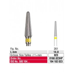 ( E0160-023 ) Fresa Laboratorio Carburo Tungsteno 0160-023 Edenta – Forma Lanza / Piramidal alargada– Anillo Amarillo – Fresa de Laboratorio para Pieza de Mano - Mandril para Pieza de Mano ( HP / PM) – 1 Unidad - 0160.023HP EDENTA