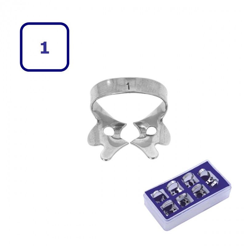 Clamps Plus - Modelo: 1 - Grapas metálicas para Dique de Goma - Venta individual - Consultar otros modelos disponibles: 0, 00, 1, 2, 2A, 7, 8, 8A, 9, 14, 212, ... - Odontología Conservadora