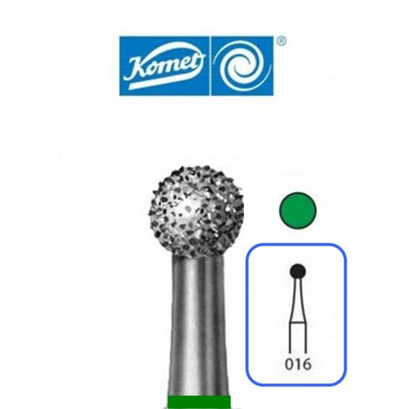 ( 6801314016 ) Fresas 801 Komet - Diamante - Tamaño 016 - Para Turbina (314) - Grano Grueso (Anillo Verde) - Forma Redonda - Indicada para Preparación de Cavidades y Cirugía Maxilofacial - Blister 5 unidades - 6801.314.016