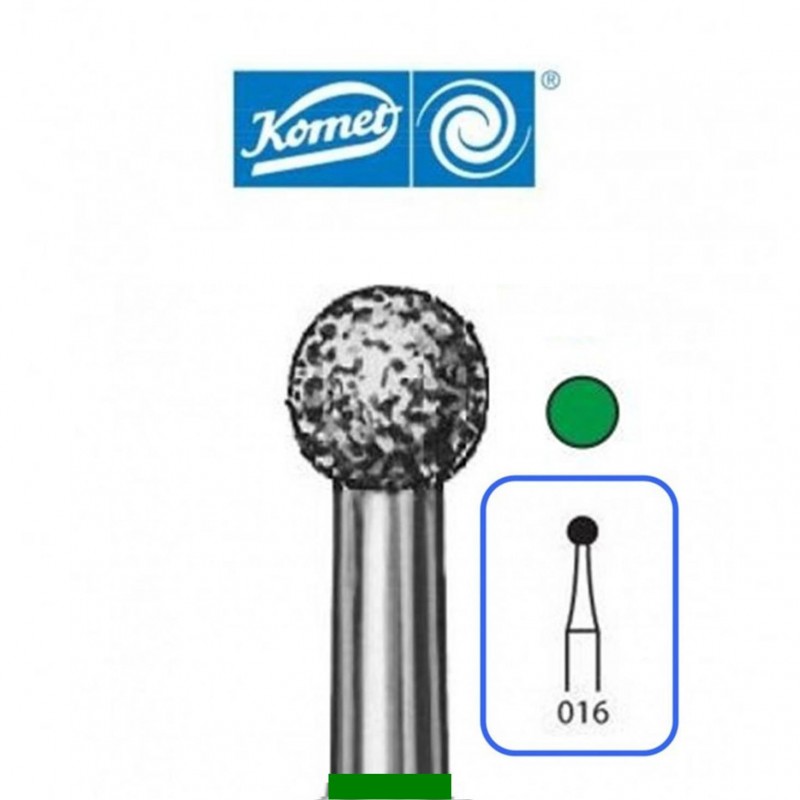 ( 6801L314016 ) Fresas 801L Komet - Diamante - Tamaño 016 - Para Turbina (314) - Grano Grueso (Anillo Verde) - Forma Redonda- Cuello Largo - Indicada para Endodoncia y Preparación de Coronas - Blister 5 unidades - 6801L.314.016