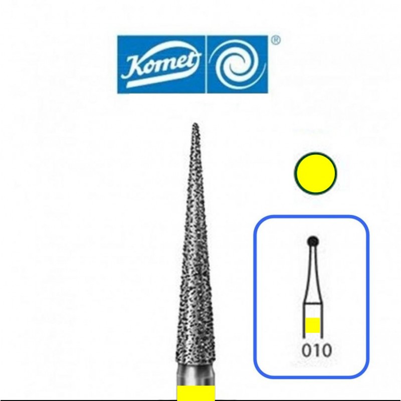 ( 859EF314010 ) Fresas 859 Komet - Diamante - Tamaño 010 - Para Turbina (314) - Grano EF-Extra Fino (Anillo Amarillo) - Forma Lanza - Indicada para Preparación de Coronas y Separar - Blister 5 unidades - 859EF.314.010