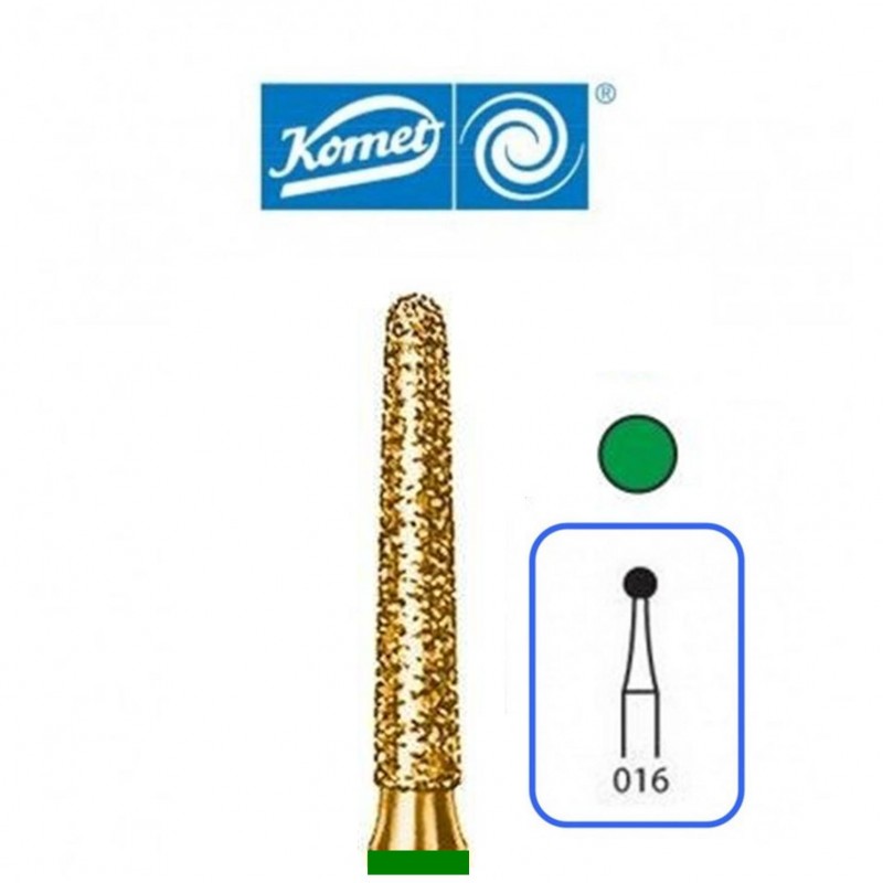 ( 2856314016 ) Fresas 856 Komet - Diamante - Tamaño 016 - Para Turbina (314) - Grano EG-Extra Grueso (Anillo Verde con Cuerpo Dorado) - Forma Lanza - Indicada para Preparación de Coronas y Separar - Blister 5 unidades - 2856.314.016