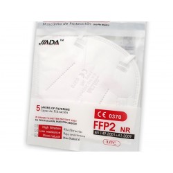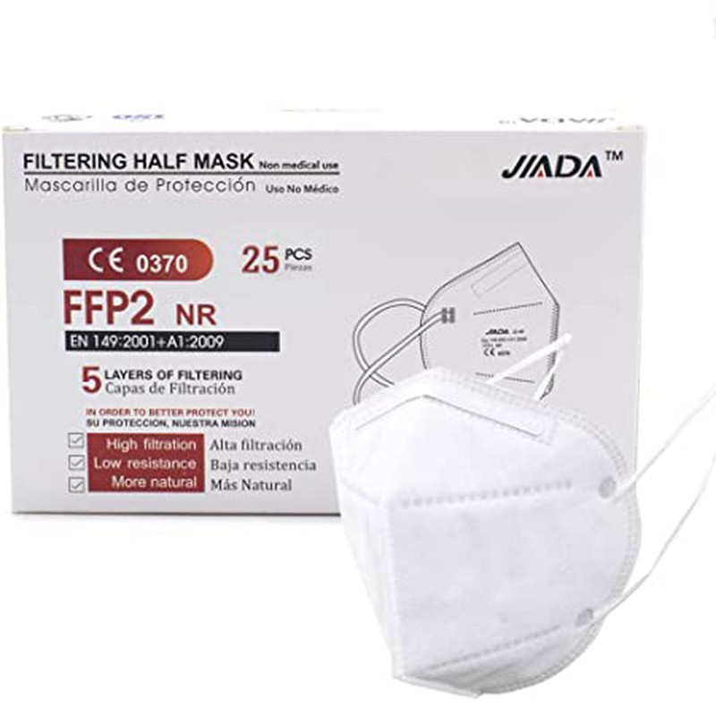 Mascarilla FFP2 - Blanca – Talla única (tamaño Adultos) - 5 capas – El pack contiene 25 unidades con envase individual - Certificado CE - Nivel de Protección: EN 149:2001+A1:2009 - Ajuste mediante gomas elásticas a las orejas - Protege frente a partículas, nieblas y humos - Clip nasal ajustable – Fácil de ajustar para proporcionar la mayor protección durante toda la jornada - Envasada individualmente – Nivel de Protección: FFP2 – Permite un ajuste sencillo y eficaz – Sin grapas - Conforme a la norma europea FFP2 EN149: 2001 CE 2834 - Mascarilla preparada para protegernos patógenos como bacterias o virus, aerosoles y los líquidos no tóxicos, como las neblinas de aceite - Gracias a la Mascarilla FFP2 se protegerá de agentes biológicos patógenos (bacterias, virus, hongos, …) sin perder la comodidad - Esta mascarilla tiene una eficacia de filtración mínima >94% (BFE) - Está fabricada 66.7% Tela no tejida, 33.3% tela fundida por soplado - Con esta mascarilla podrá seguir las recomendaciones sanitarias españolas de uso de mascarillas durante el estado de alarma - Certificado No. CE_PC-200401-179 (Cumple normativa comunitaria: Regulation (EU) 2016/425 Equipos de Protección Individual). Organismo evaluador de la conformidad: CCQS Certification Services Limited - BFE >94% (Eficiencia de filtración bacteriana) - PFE >94% (Eficiencia de filtración de partículas)