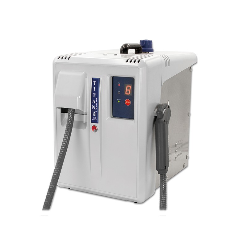 ¡¡¡¡ OFERTA ESPECIAL !!!! ( R-100202 ) Máquina de Vapor Titan 8 Mestra – Vaporeta – Caldera: 3 Litros – Presión: 8 Bar - Fabricada en acero inoxidable con componentes de Alta Calidad - Presostato Digital - Indicador de llenado y falta de agua - Cable de conexión con diferencial incorporado - Grifo de Desagüe con bloqueo de seguridad - El agua destilada se carga directamente en la caldera – 2.200 W – Dimensiones (mm): 360 x 270 x 420 – Peso: 12,5 Kg