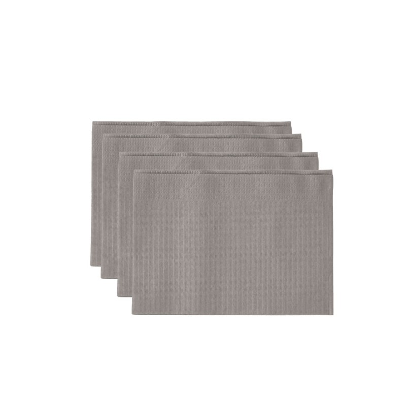 ( 21810416 ) Servilletas / Baberos Euronda - Color Gris - Dos capas: 1 de papel y 1 de polietileno - Estampado relieve - Impermeable - Con refuerzo plástico - Envase de 500 unidades