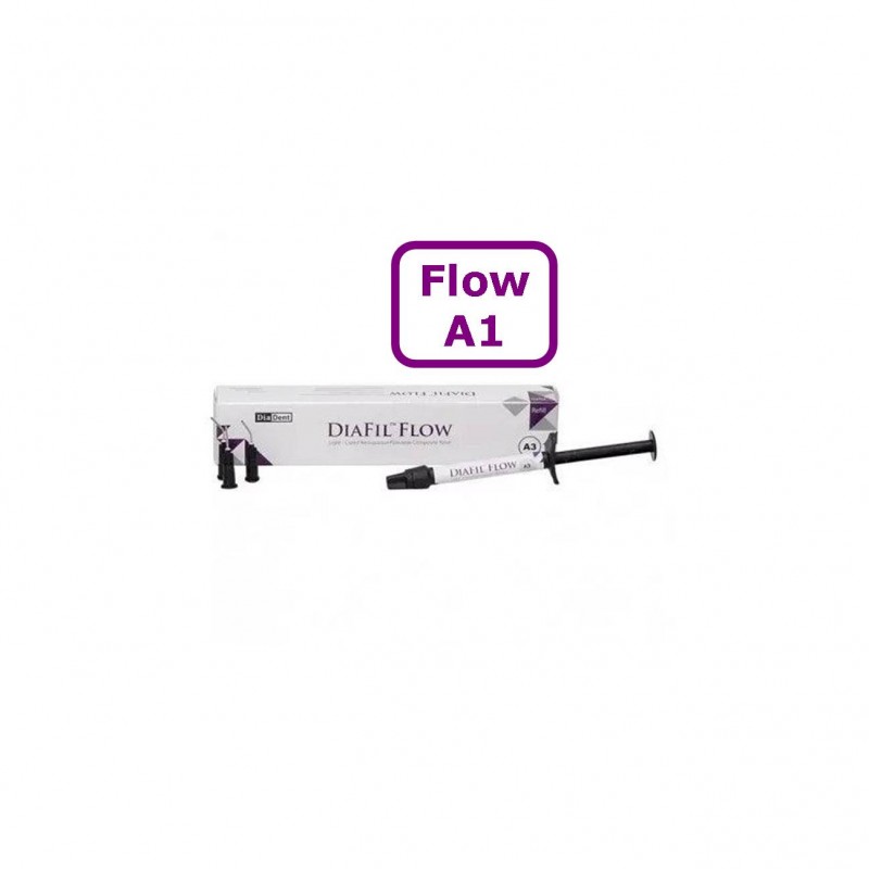 Composite DiaFil Flow Diadent - Microhíbrido - Fluido - Color: A1 (también disponible en colores A1, A2, A3, A3'5, B2, B3, C2, A2O Opaco, A3O Opaco - Fotopolimerizable - Radiopaco - Envase: 1 jeringa x 2 g